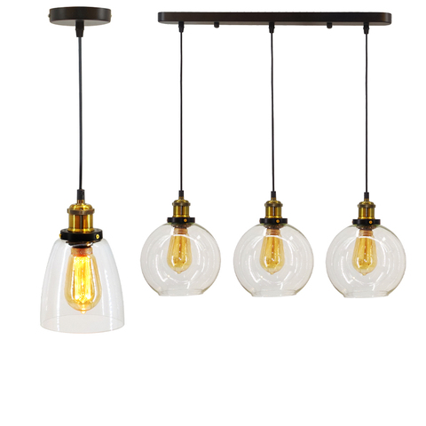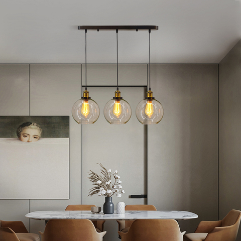 Vintage Industriële Geblazen Glas Hanger Kroonluchter Creatieve Drie Hoofd Indoor Glazen Bol Hangende Lamp Met Verstelbare Hoogte
